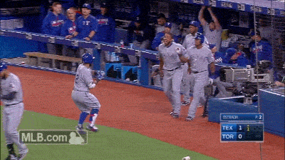 Another month of Rangers baseball in the books. And boy was it an interesting one. Yes, that punch will be talked about even though it's been talked about too death, I still have a lot to say about it. So here goes my thoughts and opinions about the Rangers May.(And if you're not one for baseball, you should still scroll to the bottom of this post for the Beltre gifs. Because everyone loves Beltre gifs! ;) )1.Ian DesmondKeeping in theme withlast month's review, let's start with Ian Desmond shall we?He continues to shut down this post, which I'm totally ok with (even if that post totally makes me look like an ass now.) I will never question Ian Desmond playing outfield again.He's now one of my favorite players on that team and definitely the outfielder I trust the most, aside from that kid Mazara. ;)When I talked about Desmond in April, his numbers were ok; batting .241, scored 21 runs (tied for 2nd in the majors), 11 RBI, and 5 stolen bases, on base percentage was .327.I'll be honest, when some of the sports writers were saying he is a streaky player, I was expecting a slump at some point in May. Again, I was wrong. He's currently batting .297 (batting .348 for the month of May,) scored 38 runs, 32 RBI, 10 stolen bases, and his on base percentage is .344.2.That kid MazaraI say "that kid" only because he's 21 and seeing someone in play in the majors that could've been in my high school graduating class. Just weird. But this "kid" is no joke! To me, the hype for Mazara being called up last month didn't seem as big as the hype for Gallo's call up last year, so I've been pleasantly surprised with how great of a start Mazara has had. Just last week he hit homer that went 491 feet, the longest homer this season. And he looks so relaxed playing the game, I guess that's why his nickname is "The Big Chill."3.That punchI held back from making an entire post about this when it first happened, because it was all over the news, even outside the sports world. But it wouldn't be a proper review of the month if this wasn't in it since it was one of the most talked about moments.If you've been living under a rock, this is what you missed:Now more obviously happened after that (which you can watch here) But that punch is the probably the main moment. First off, I don't know much about throwing punches and the grading scale for them but I can say that is an A+ punch right there. Solid contact.A couple things I have to just say once and for all before I attempt to shut up about it forever. (Ok forever is probably a lie, but like for a while...?) Anyway, I think Odor eight game, reduced to seven, suspension was too much and Bautista's one game, Pillar and Donaldson's no game, suspension was too little. I watched the entire fight at the very least 10 times, in addition to slow motion (you could call it investigative journalism) and I still don't understand how the league decided the suspensions. I don't understand how Elvis got a one game suspension when his punch/hit was less obvious, I missed it every time I watched the video and didn't even catch it until I slowed the video down to .25, it happens so fast, and if you're curious it happens at the 13 second mark in the video. How Pillar and Donaldson's leaping and swinging fists only got was a slap-on-the-wrist $1,000 fine is beyond me. I'm not saying suspensions should be handed out by whether or not a punch is obvious, I'm just saying I don't know what video the league watched when deciding who got what punishment. You can call me a homer all you want, and I'm not disagreeing about Odor deserving a suspension, but come on, the Blue Jays weren't exactly innocent victims in this entire brawl either.So that's all I have to say about that.4.That Joey Gallo call up Because of the brawl, the horrible bullpen situation, and numerous injuries, there was a lot of talk about who would be sent down, who would be brought up, and who would "replace" Odor while he served his suspension.The Rangers brought up Gallo on Monday when Stubbs was put on the disabled list. Which made absolutely no sense to me at the time and still doesn't. Gallo plays third base, why bring him up for an outfielder? Rangers originally said he was brought up to play the outfield (which he played a little last year, and I've made it known, putting infielders in the outfield is just something I don't agree with. Desmond is just a weird outlier here.) Again, made no sense, we had plenty of outfielders to take Stubbs spot. Then they said it was to have a bat on the bench. He had one at-bat the five games he was up for. Then they sent him down when they activated Darvish on Saturday. Sounds like a waste of a week for a young player who just came off the disabled list himself. Personally, I think they could've easily let him DH for a game or two, let Fielder have a few days off. Or let Gallo play first base, like he did Sunday and Tuesday in Round Rock, for Moreland.Or just let him play in general at some point in those five games.5.Those memorable momentsMy favorite thing about the Rangers, they just have fun playing the game. They're fun to watch and in a game that I'll admit can get boring at times, you have to enjoy watching a team that loves the game they're playing.Bobby Wilson hit two grand slams in a week (the Rangers didn't hit one all last season.)Elvis got taken out by a sniper rounding first.Alberto blew the best bubblegum bubble ever.Watching these guys just having fun!Yu came back.6.Those Beltre MomentsI'm sure you're all still here for the best part of this post, the Beltre gifs of the month. And of course, they're all gems.And my personal favorite ongoing Ranger gag, touching Beltre's headCan't wait to see what June has in store for this team!#NeverEverQuit